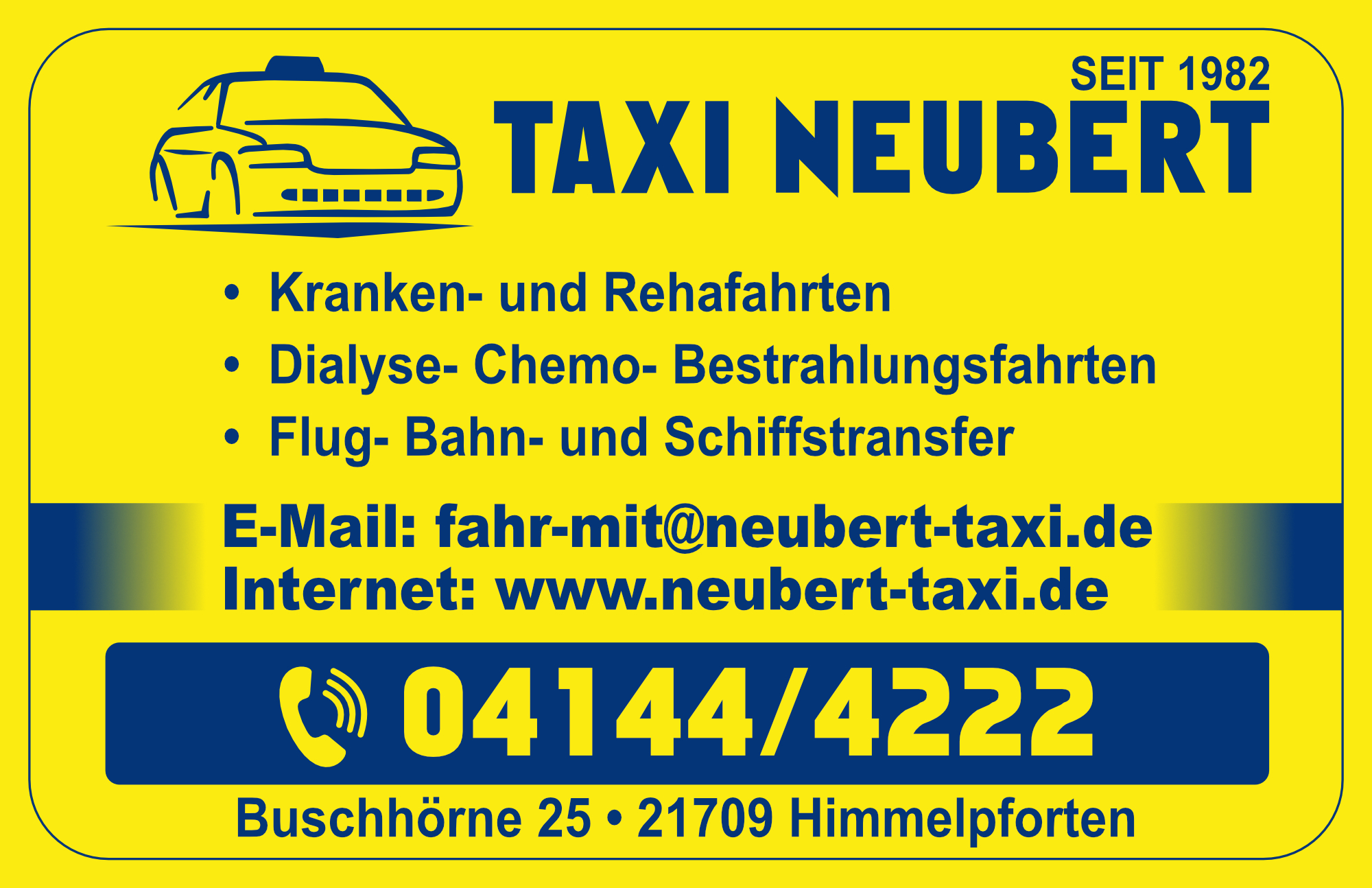 Tel.: 04144 4244 oder per E-Mail: fahr-mit@neubert-taxi.de